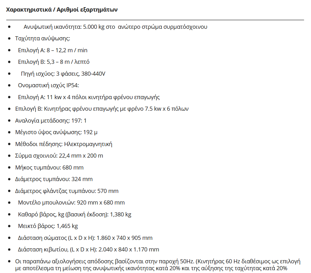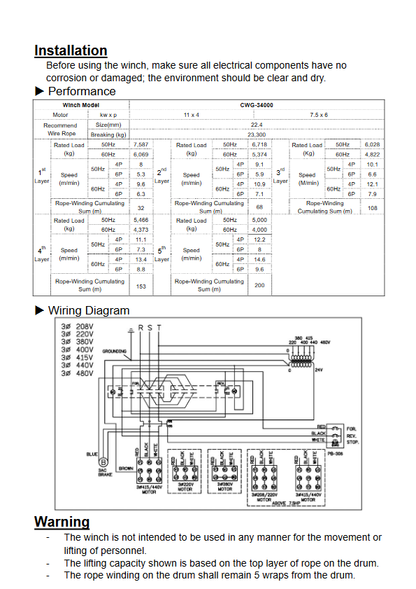COME UP CWG-34000 | Τριφασικό βαρούλκο με συρματόσχοινο 192 m 5000 kg ανύψωση λειτουργίας 380 V