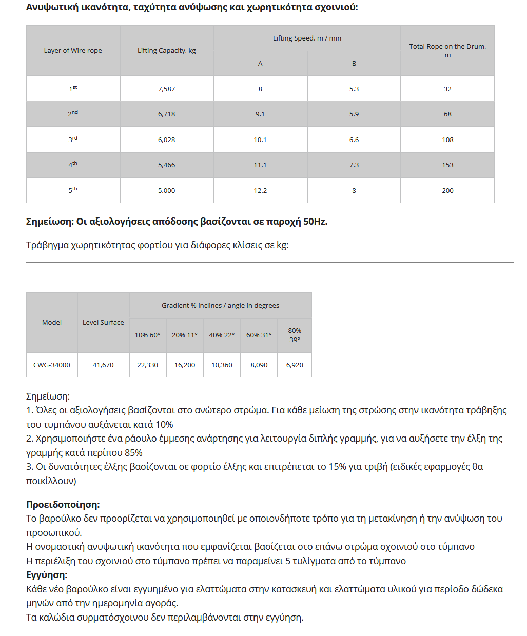 CWG-34000 Βαρέως τύπου βαρούλκα συρματοσχοίνου COME UP που μπορούν να καλύψουν μια τεράστια γκάμα από μεγάλα φορτία με ευκολία και μεγάλη αξιοπιστία.Επαγγελματικά βαρούλκα έτοιμα να δουλέψουν με μεγάλη ευκολία και ασφάλεια για τον χειριστή.