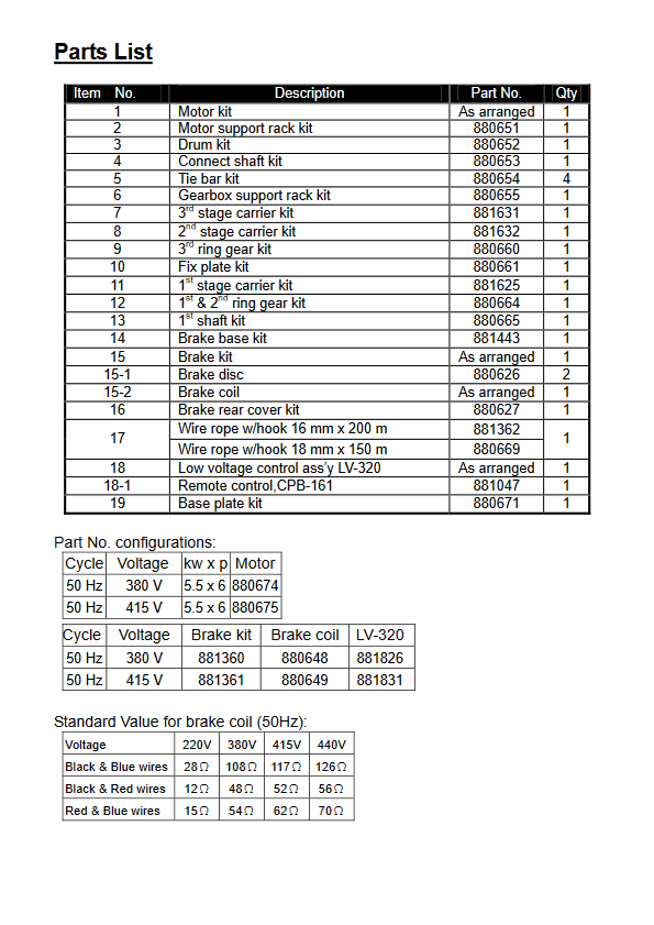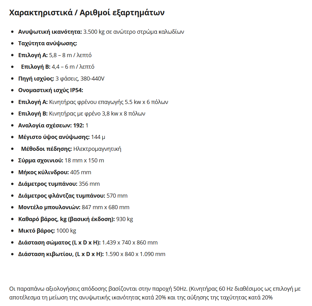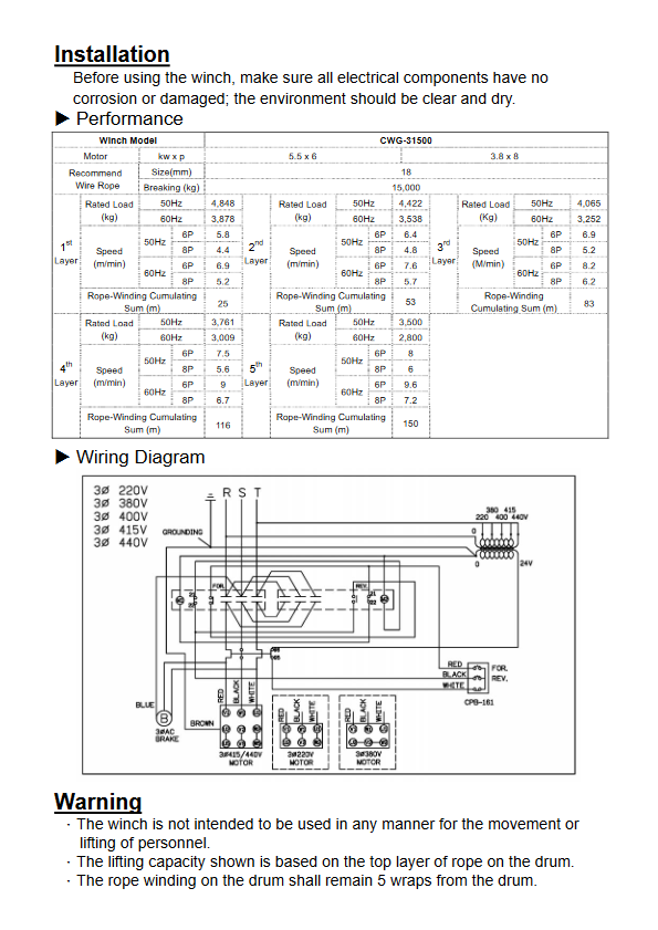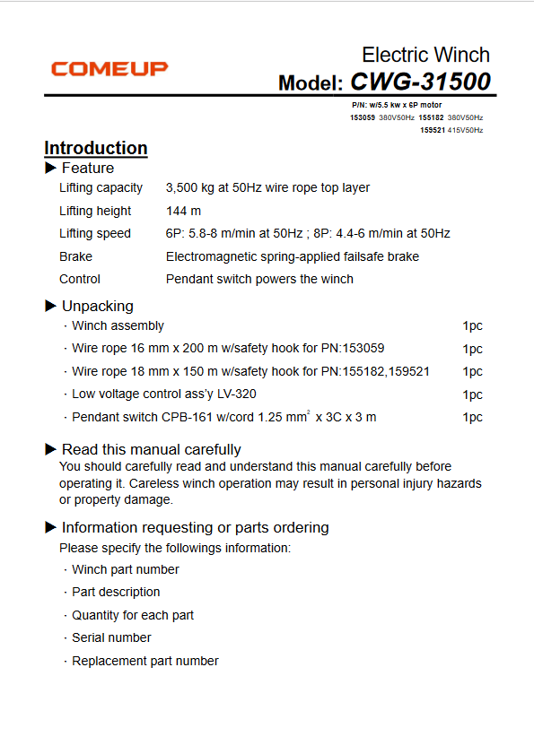 COME UP CWG-31500 | Τριφασικό βαρούλκο με συρματόσχοινο 144 m 3500 kg ανύψωση λειτουργίας 380 V