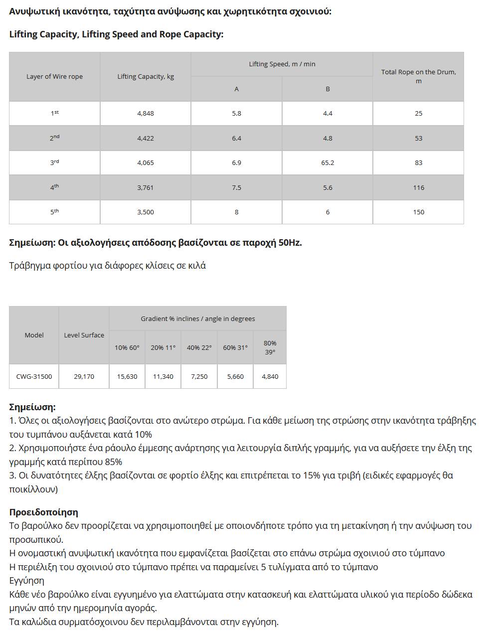 CWG-31500 Βαρέως τύπου βαρούλκα συρματοσχοίνου COME UP που μπορούν να καλύψουν μια τεράστια γκάμα από μεγάλα φορτία με ευκολία και μεγάλη αξιοπιστία.Επαγγελματικά βαρούλκα έτοιμα να δουλέψουν με μεγάλη ευκολία και ασφάλεια για τον χειριστή.