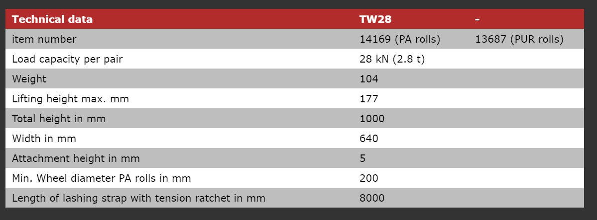 - Φορείο μεταφοράς & ανύψωσης μεγάλων αντικειμένων TW-28 2800kg,177mm ανύψωση