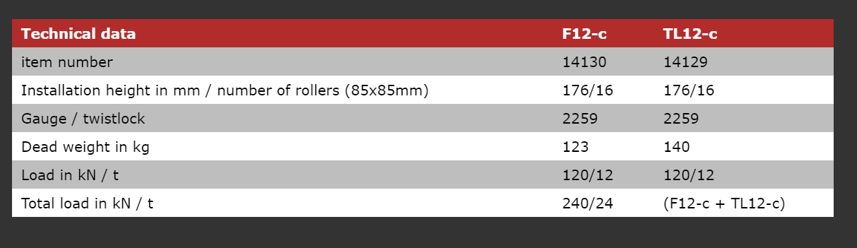 - Όμως, η εύκολη μετακίνηση ογκωδών εμπορευματοκιβωτίων σε οποιοδήποτε περιβάλλον είναι δυνατή με τα πατίνια εμπορευματοκιβωτίων F12-C.