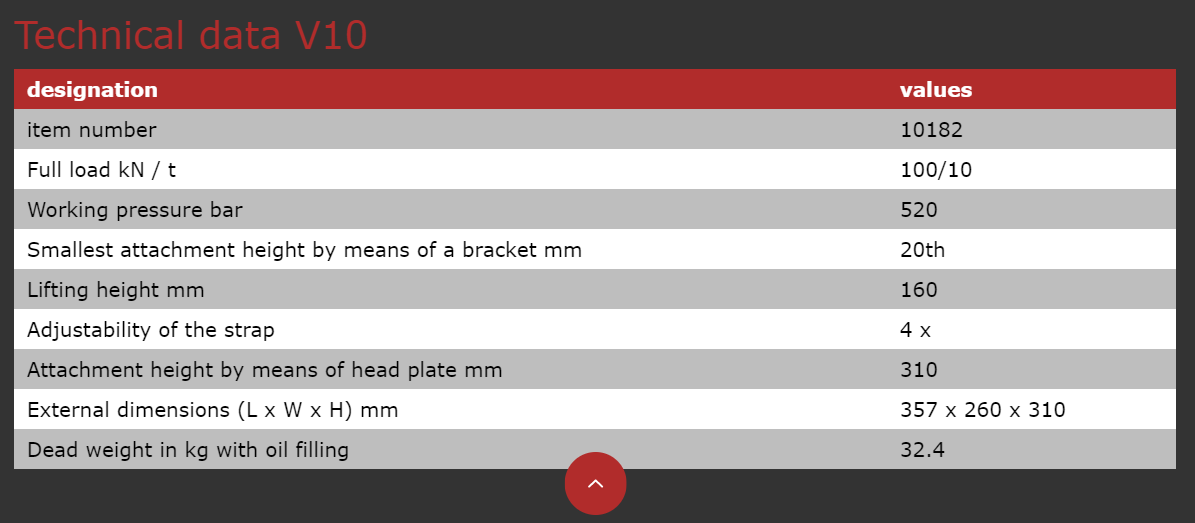 • A self-contained toe jack, the V10 features a minimum load height of just 20 millimeters, wheels that facilitate easy rolling and a lifting capacity that can be doubled when operated in tandem with a second hydraulic toe jack using an external GKS PV Hand Pump.