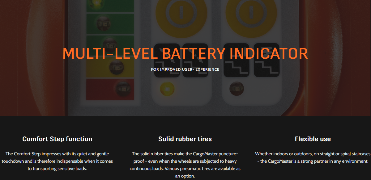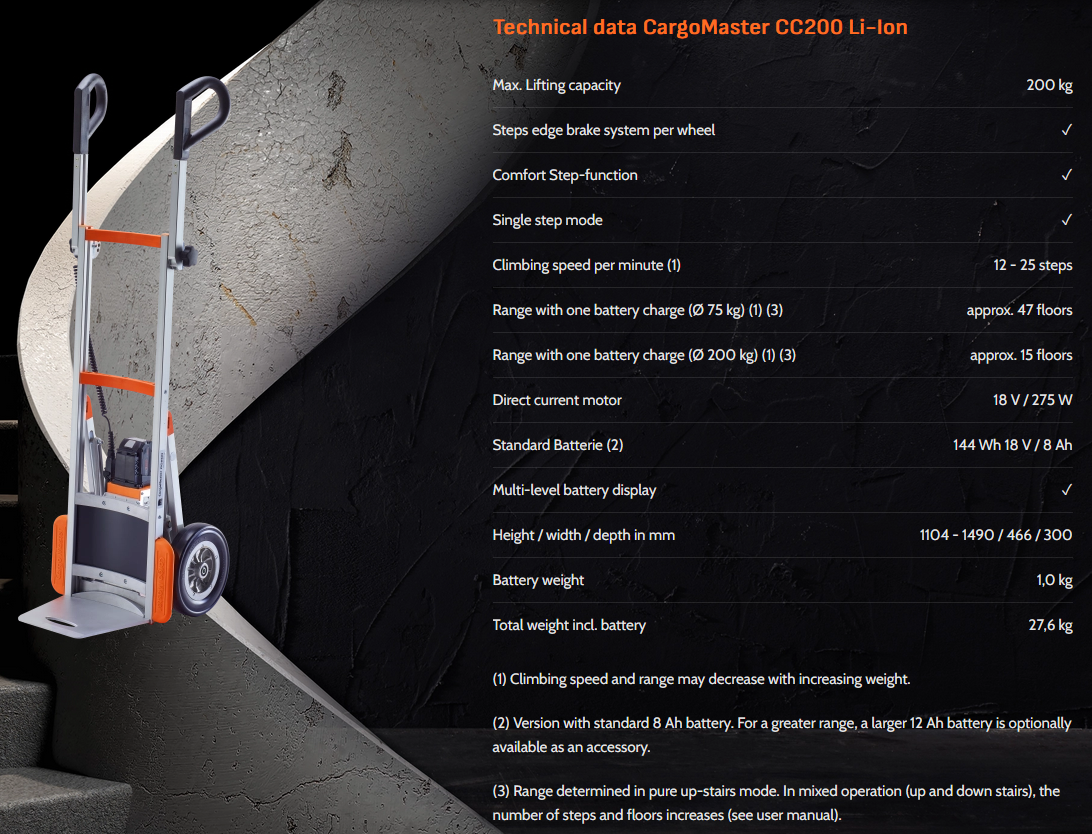- CARGOMASTER CC200 LI-ION | Ηλεκτρικό καρότσι μπαταρίας λιθίου για σκάλες - 200 kg