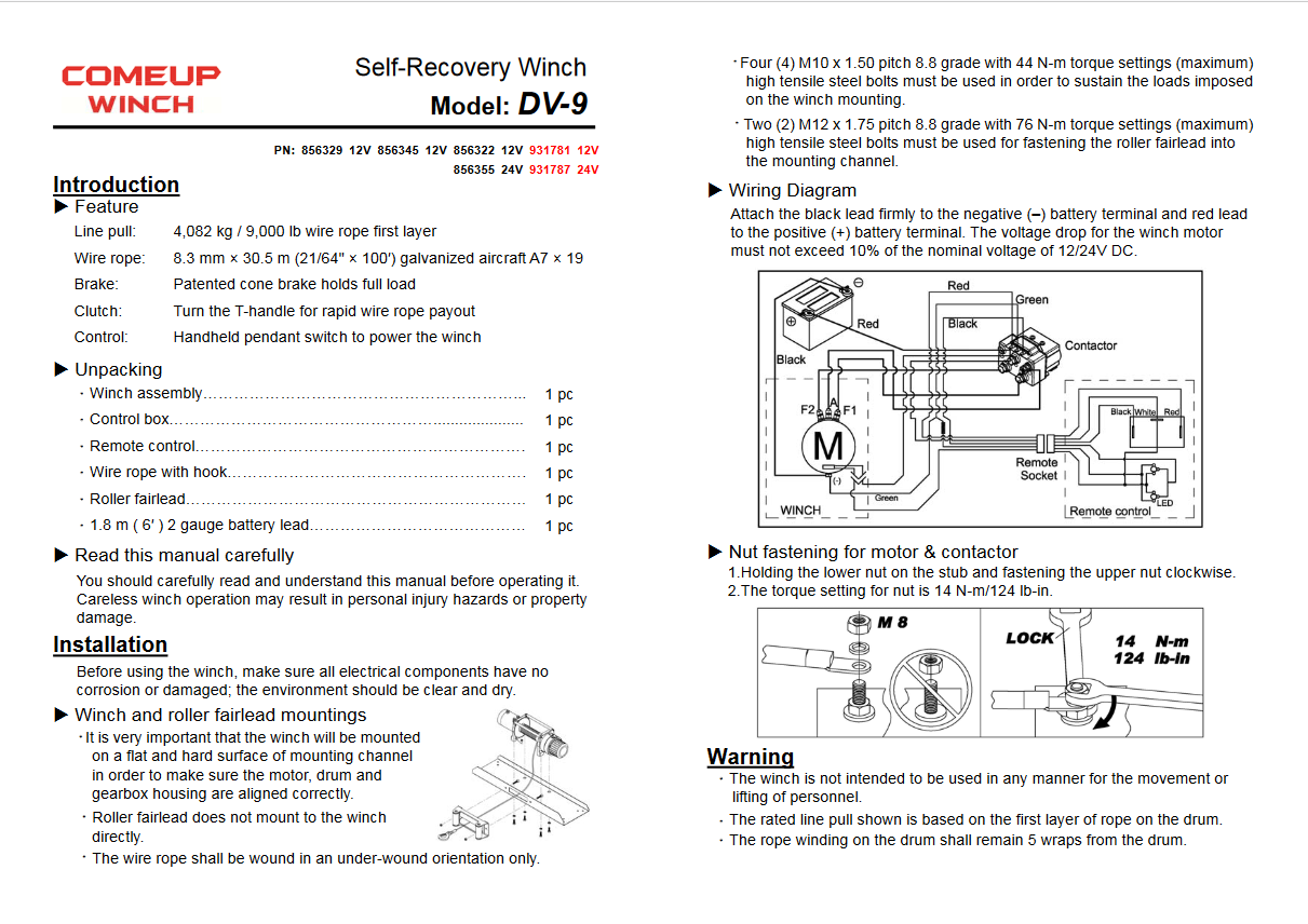 COME UP DV‑9 Vehicle Winch 4082 kg   Vehicle Winch COME UP DV‑9   COME UP DV‑9 30.5 m wire rope Winch   COME UP DV‑9 4082 kg Vehicle Winch
