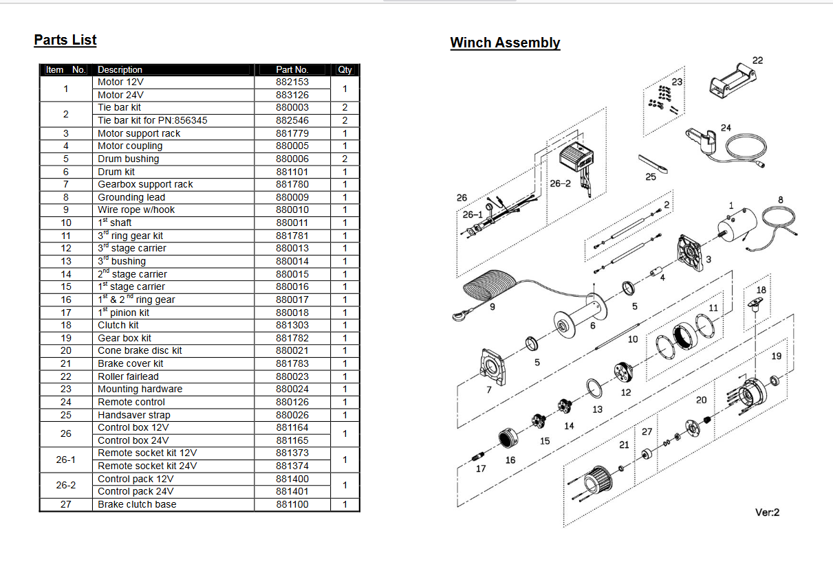 • Winch construction: Aluminum die cast housings with steel drum