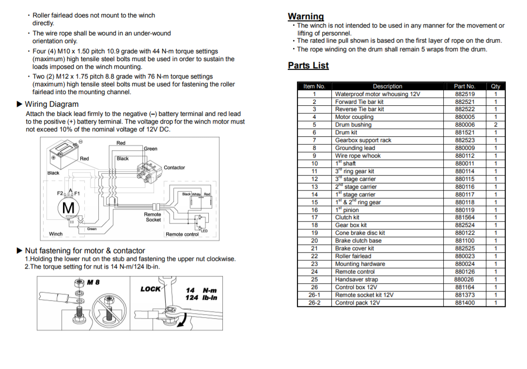 - Winch weight (including rope) : 36.2 kg / 79.8 lb