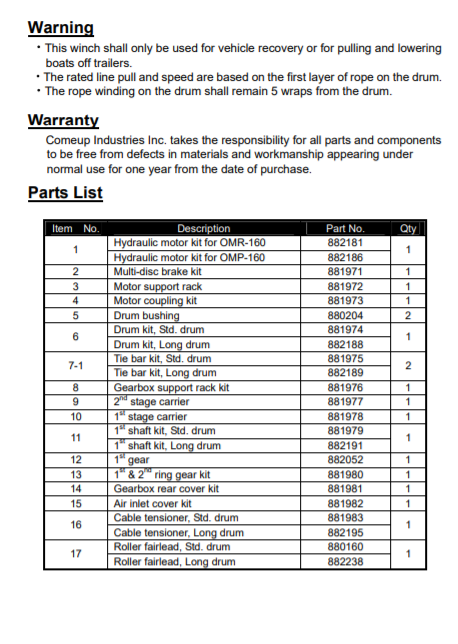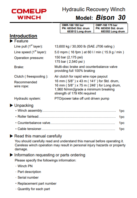 - Συμμορφώνεται με το SAE J706, την οδηγία 2006/42 / EC για τα μηχανήματα και τα ηλεκτροκίνητα βαρούλκα τύπου EN 14492-1: 2006.