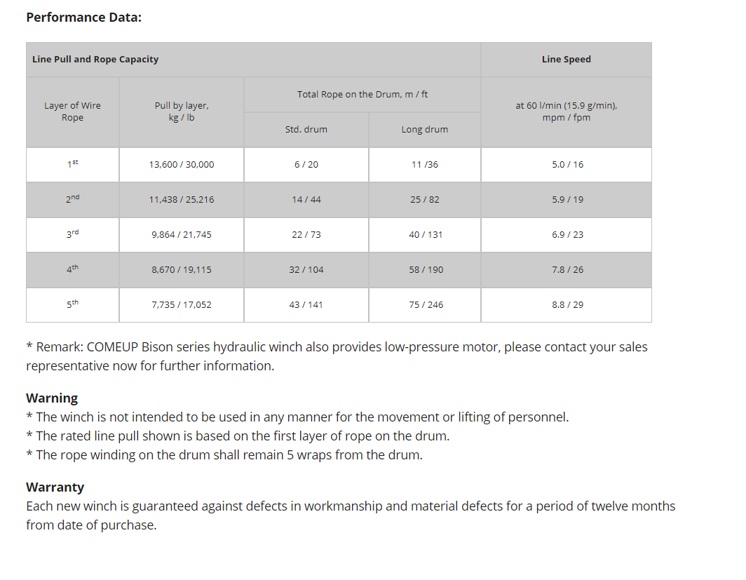 - Ονομαστική έλξη γραμμής: 13.600 kg / 30.000 lb (βαθμολογία SAE J706).
