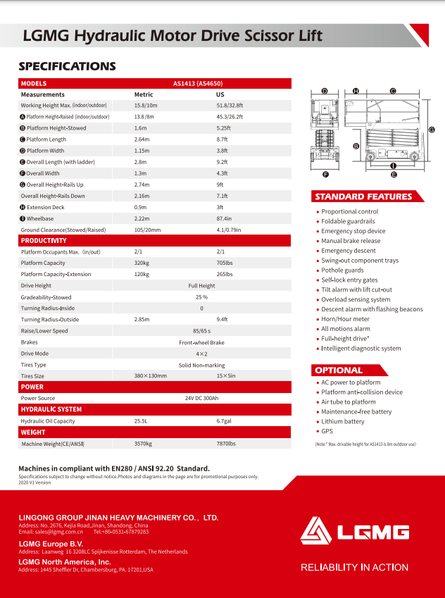 - SCISSOR WORKING PLATFORM AS1413 320KG 15.8M