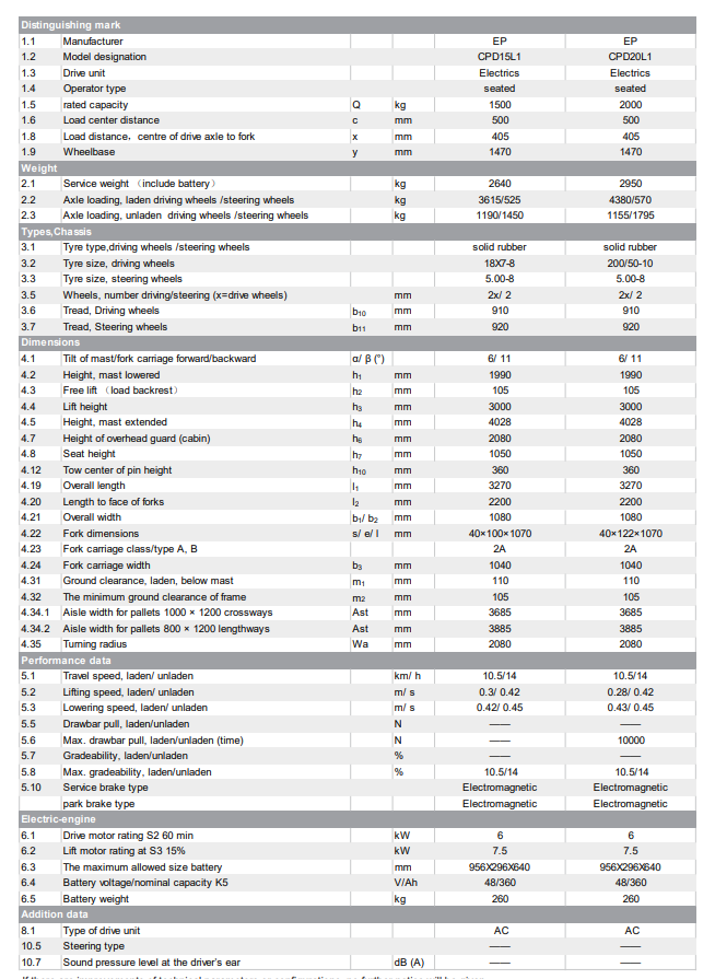 Το τετράτροχο περονοφόρο εξισορρόπησης L1 Li-Ion από την EP Equipment είναι το πρώτο πραγματικό περονοφόρο όχημα Li-Ion στον κόσμο. Το πλαίσιο έχει σχεδιαστεί γύρω από τα πλεονεκτήματα της τεχνολογίας Li-Ion. Το περονοφόρο έχει τον μεγαλύτερο χώρο καμπίνας στη βιομηχανία για μέγιστη εργονομία. Με γρήγορη φόρτιση και υψηλή απόδοση, είναι τέλειο για την αντικατάσταση περονοφόρο.