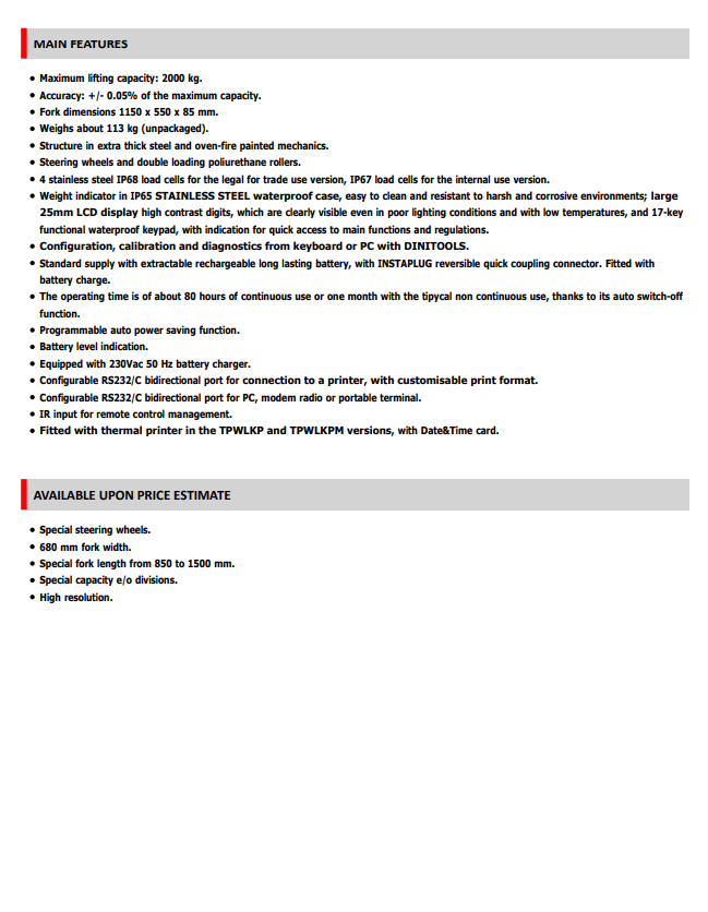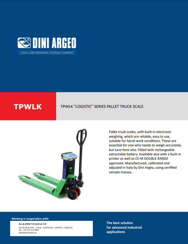 - DINI ARGEO ΧΕΙΡΟΚΙΝΗΤΟ ΠΑΛΕΤΟΦΟΡΟ ΜΕ ΖΥΓΑΡΙΑ & ΕΚΤΥΠΩΤΗ TPWLKP-6 LOGISTIC SERIES - 2M 2000KG