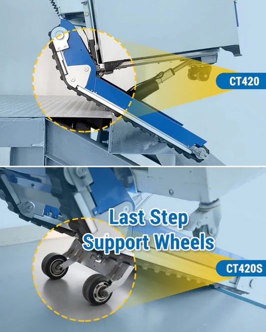 Το XSTO stair climber CT420S είναι ένα αυτόματο καρότσι αναρρίχησης σκαλοπατιών το οποίο φορτώνει έως και 420KG φορτίο στις σκάλες και είναι η premium έκδοση του XSTO CT420!