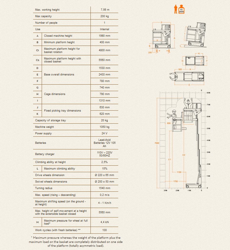 - Το μικρό του μέγεθος (μόνο 78x153 cm) και η συμπαγής διάσταση επιτρέπουν στον χειριστή να το μετακινεί εύκολα ακόμα και στους πιο στενούς χώρους. Εύκολο και άνετο στους ελιγμούς χάρη στο joystick και τη μηδενική ακτίνα στροφής