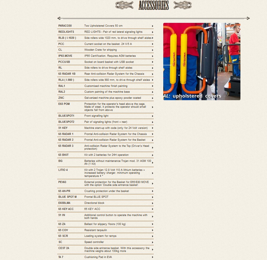 - Στην ενότητα εξοπλισμός και αξεσουάρ, θα βρείτε τη λίστα με τα βασικά εξαρτήματα και αξεσουάρ για να προσαρμόσετε το Elevah 65 TB και να το προσαρμόσετε στις ανάγκες σας.