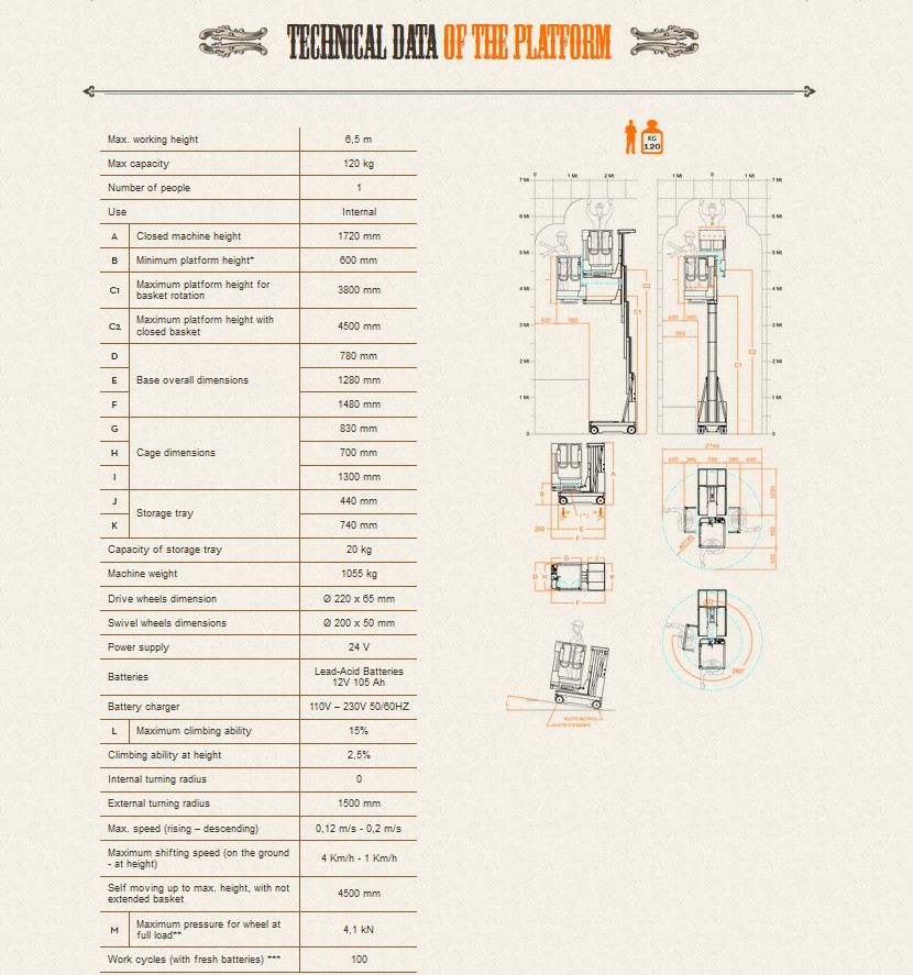 ** Ως κύκλος εργασίας εννοούμε αυτοκινούμενη κίνηση 20 m με πλήρη ανάβαση και κάθοδο από το μέγιστο ύψος και με ρύθμιση της πλατφόρμας φόρτωσης.
