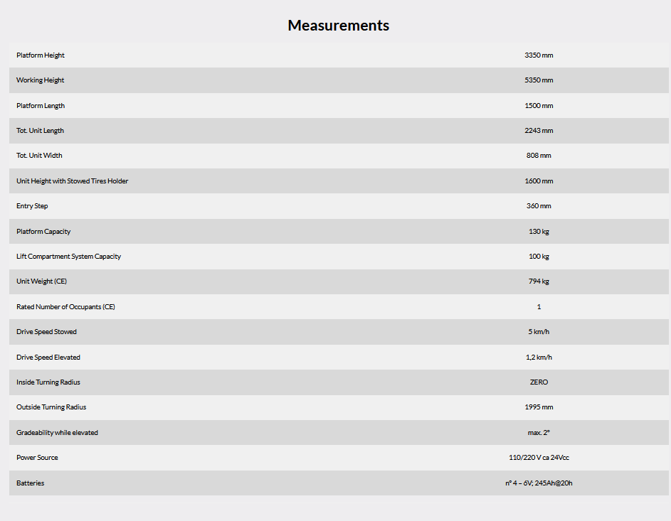 - Το καινοτόμο Σύστημα Ανυψωτικού μπορεί να φορτωθεί με έως και τέσσερα ελαστικά, διαμέτρου μεταξύ 55 cm και 76 cm και μέγιστου βάρους 100 kg.