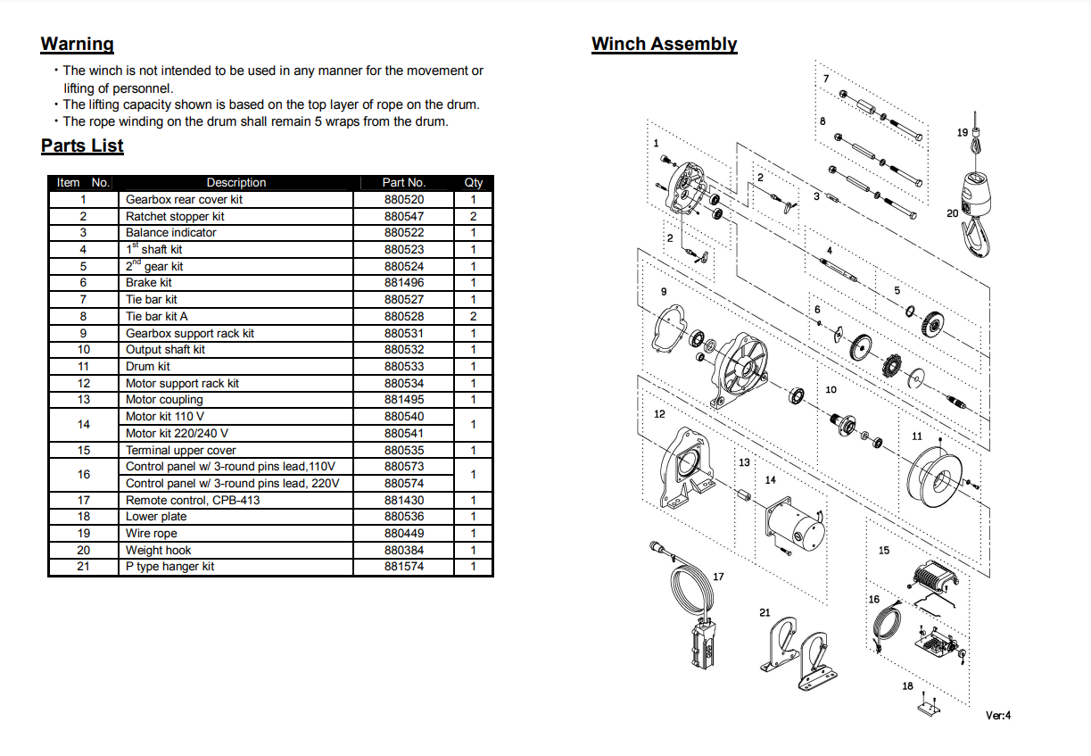 - The winch is not intended to be used in any manner for the movement or lifting of personnel.