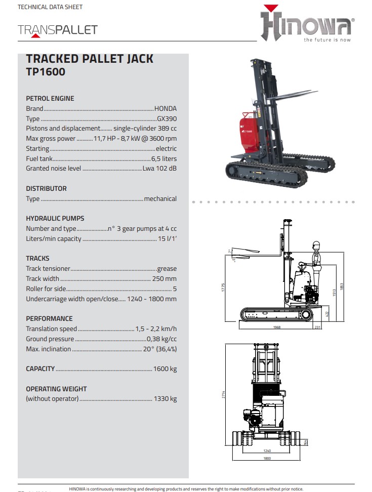 HINOWA ερπιστριοφόρο παλετοφόρο TP1600 για 1600 kg