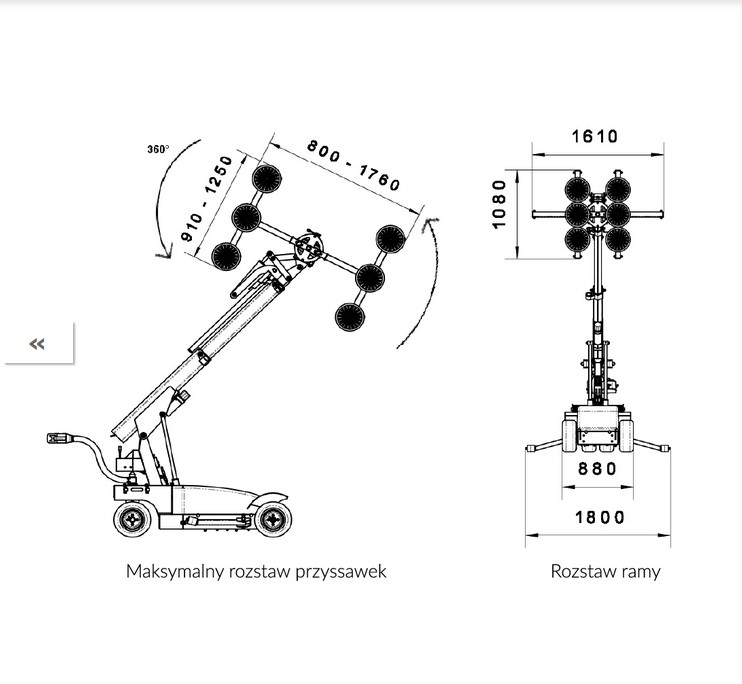 Befard XC820.3, τροχοφόρο ρομπότ τζαμιών, vacuum manipulator 820 kg, ρομπότ τοποθέτησης τζαμιών, τηλεχειρισμός, suction cups