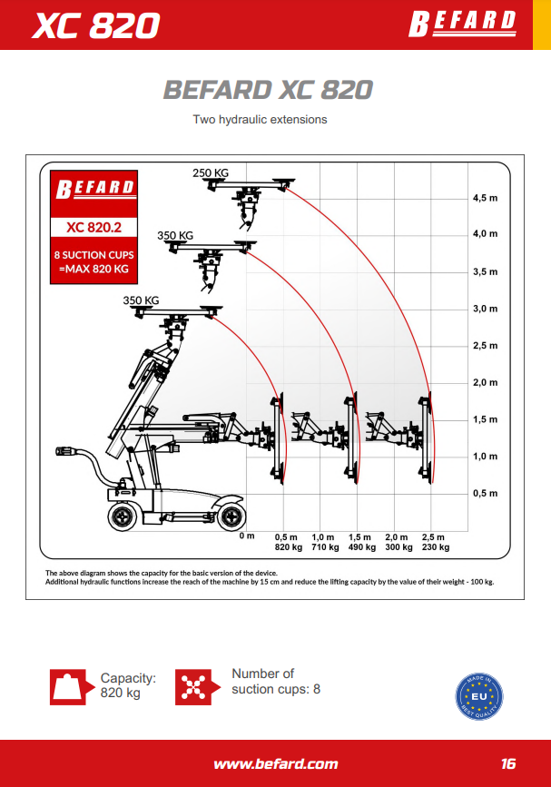 • Η μέγιστη ανυψωτική ικανότητα του ρομπότ BEFARD XC820 είναι 820 κιλά