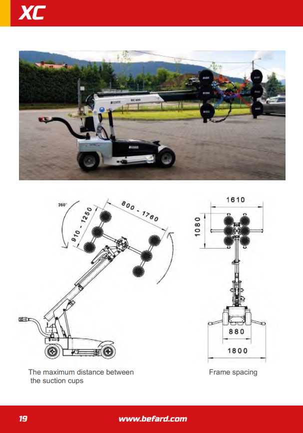Befard XC820.3 | Τροχοφόρο ρομπότ ανύψωσης και τοποθέτησης τζαμιών με εμβέλεια εώς 5,7 m και ανυψωτική ικανότητα 820 kg