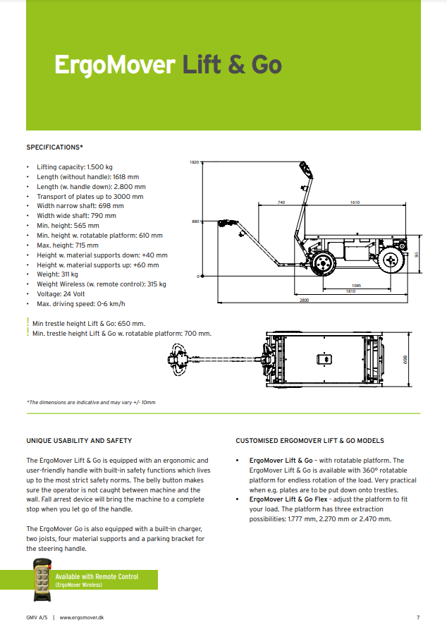- ErgoMover Wireless – με καλώδιο ή τηλεχειριστήριο. Ιδανικό για μεγάλα φορτία.