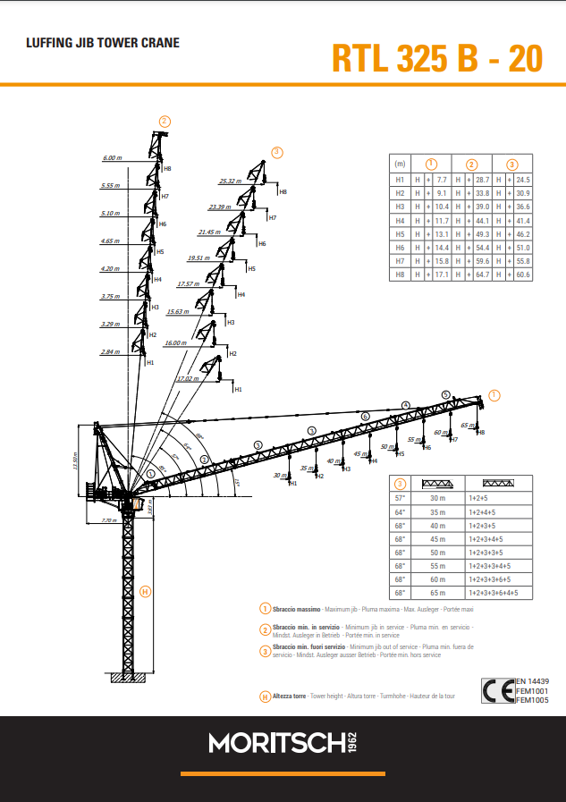 ΣΤΑΘΕΡΟΣ ΓΕΡΑΝΟΣ RTL325Β ΜΕΓΙΣΤΟ ΦΟΡΤΙΟ 20.000KG - 65M ΜΗΚΟΣ & 72.4Μ ΥΨΟΣ