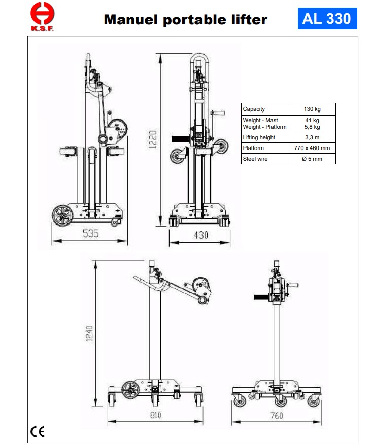 KSF AL330 ανυψωτικό υλικών 110 kg 3,3 m Φορητό lifter AL330 για τέντες, πέργκολες, HVAC AL330 με πλατφόρμα 770 × 460 mm