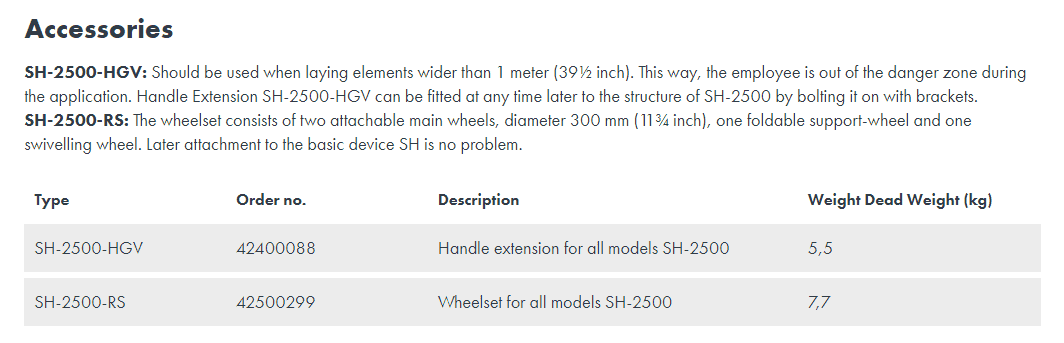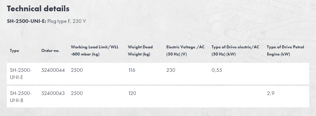 Όριο φορτίου εργασίας: Τύπος SH-2500-UNI έως 2.500 kg στα - 0,6 bar.