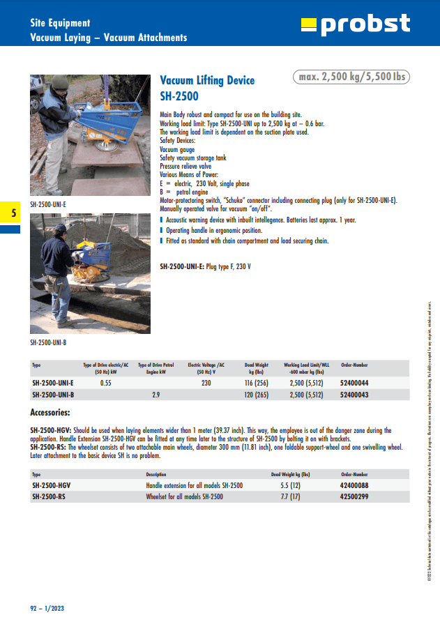 - PROBST SH-2500-UNI | Ανυψωτική Βεντούζα για πλάκες και στοιχεία σκυροδέματος | 2500 kg