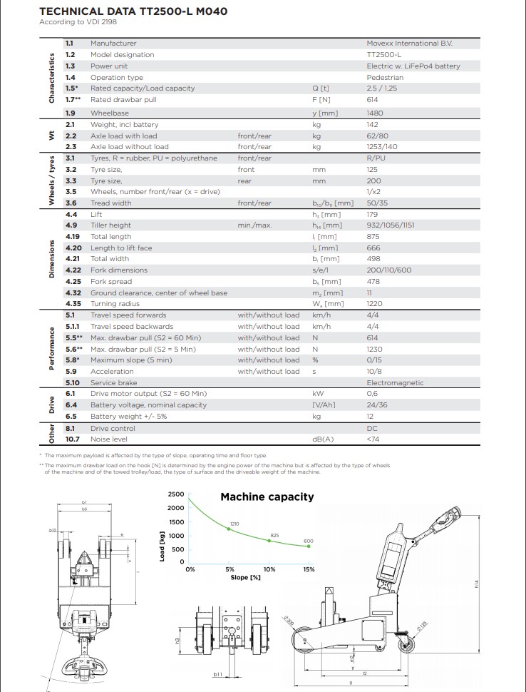 - Το Movexx TT2500-L είναι ένα συμπαγές ηλεκτρικό ρυμουλκό με ηλεκτρική συσκευή ανύψωσης.