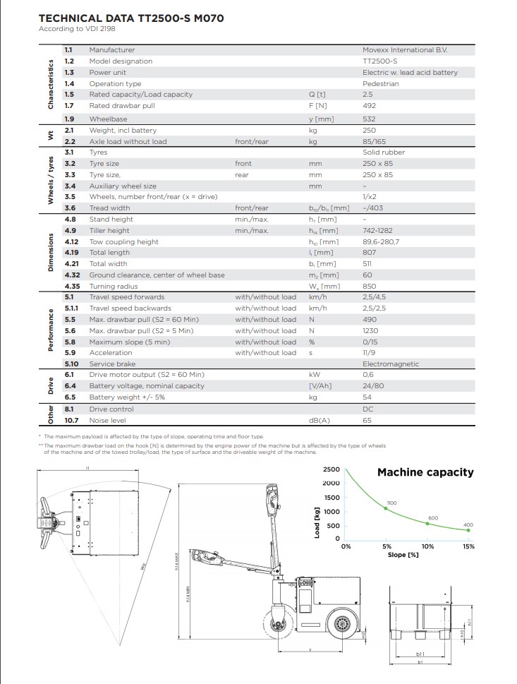 - Το Movexx TT2500-S είναι ένα ηλεκτρικό ρυμουλκό, το οποίο παράγει πρόσφυση μέσω του ίδιου του βάρους.