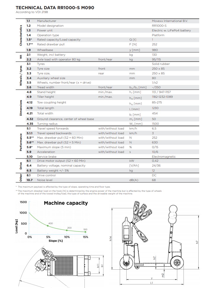 Το RR1000-S μπορεί να μετακινεί με ευκολία καρότσια και τρόλεϊ έως και 1000 kg.