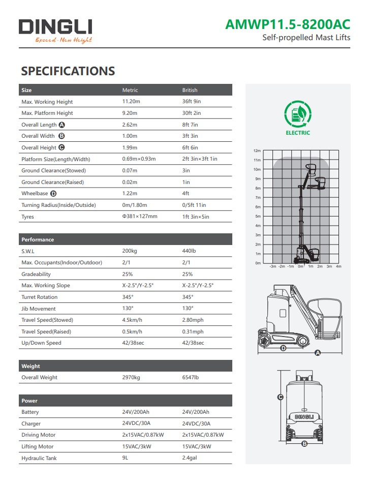 - Dingli AMWP11.5-8100AC | Ηλεκτρικό αυτοκινούμενο ανυψωτικό ατόμων 11.2 m 200 kg