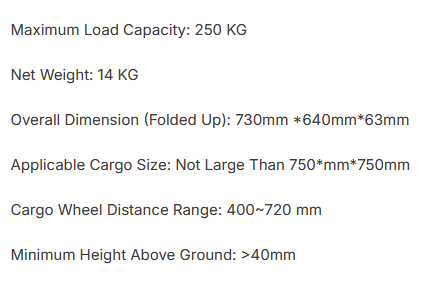 In addition, the cargo plate and ramps are adjustable within certain range according to different cargo size.