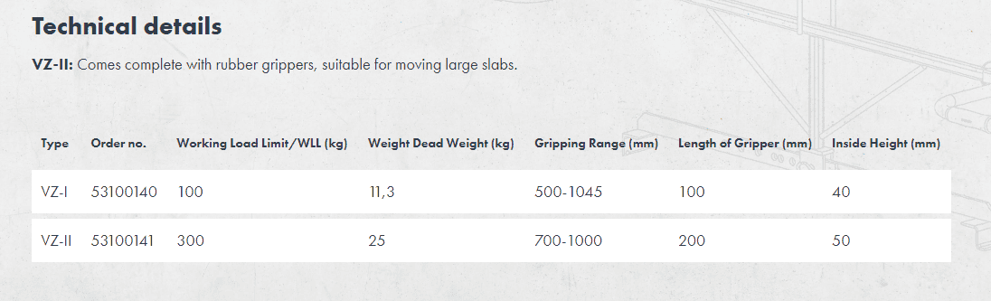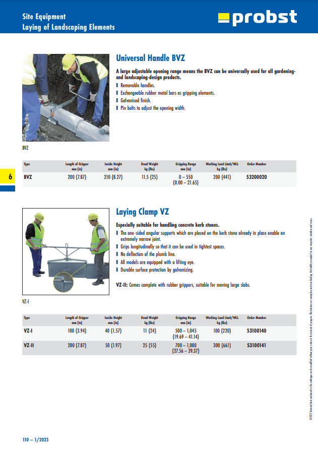 Probst VZ | Laying Clamp for lifting and placing concrete kerb stones up to 300 kg