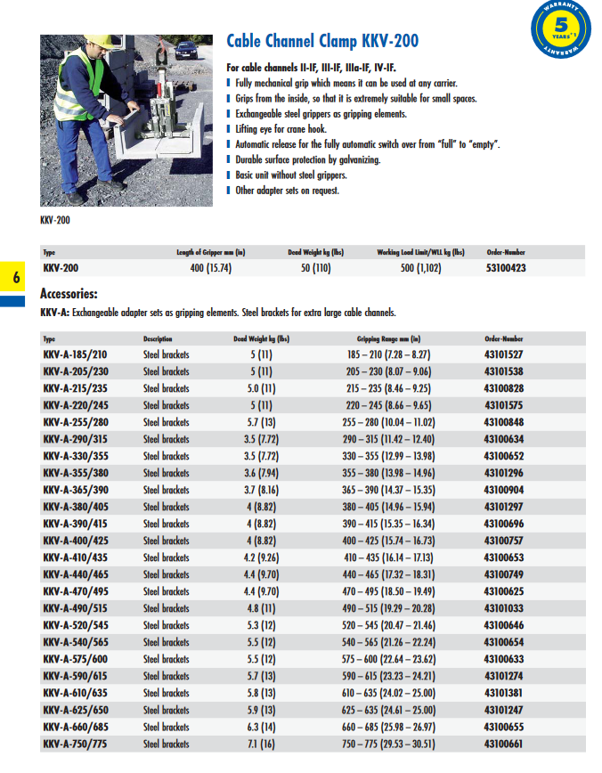 - Probst KKV-200 | Ανυψωτική αρπάγη για κανάλια καλωδίων | 500 kg
