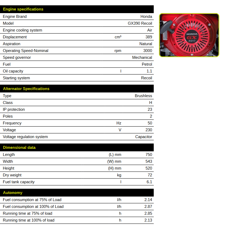 GENERATOR SERIES MES8000 230V 7.2 kVA