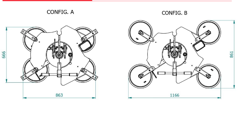 VEB4 RCMBM D4Το μοντέλο VEB4 RCMBM d4 είναι ανυψωτικό γυαλί κενού με τέσσερις βεντούζες d. 390 mm, ιδανικό για ανύψωση και χειρισμό γυάλινων φύλλων.