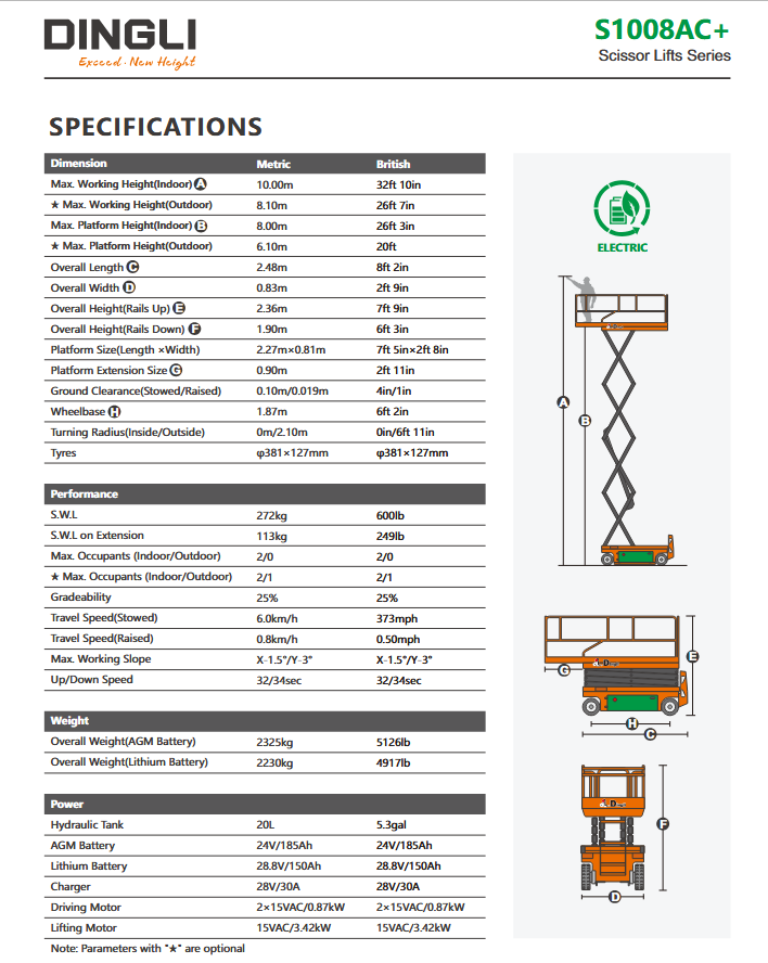 - Dingli S1008AC+ | Ηλεκτρική ψαλιδωτή πλατφόρμα εργασίας 10 m 272 kg