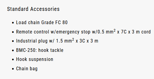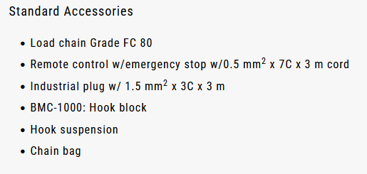 BMC-1000 Βαρούλκο αλυσίδας ,κινητήρα συνεχούς ρεύματος χωρίς ψήκτρες - φορτίο ανύψωσης 1.000 kg