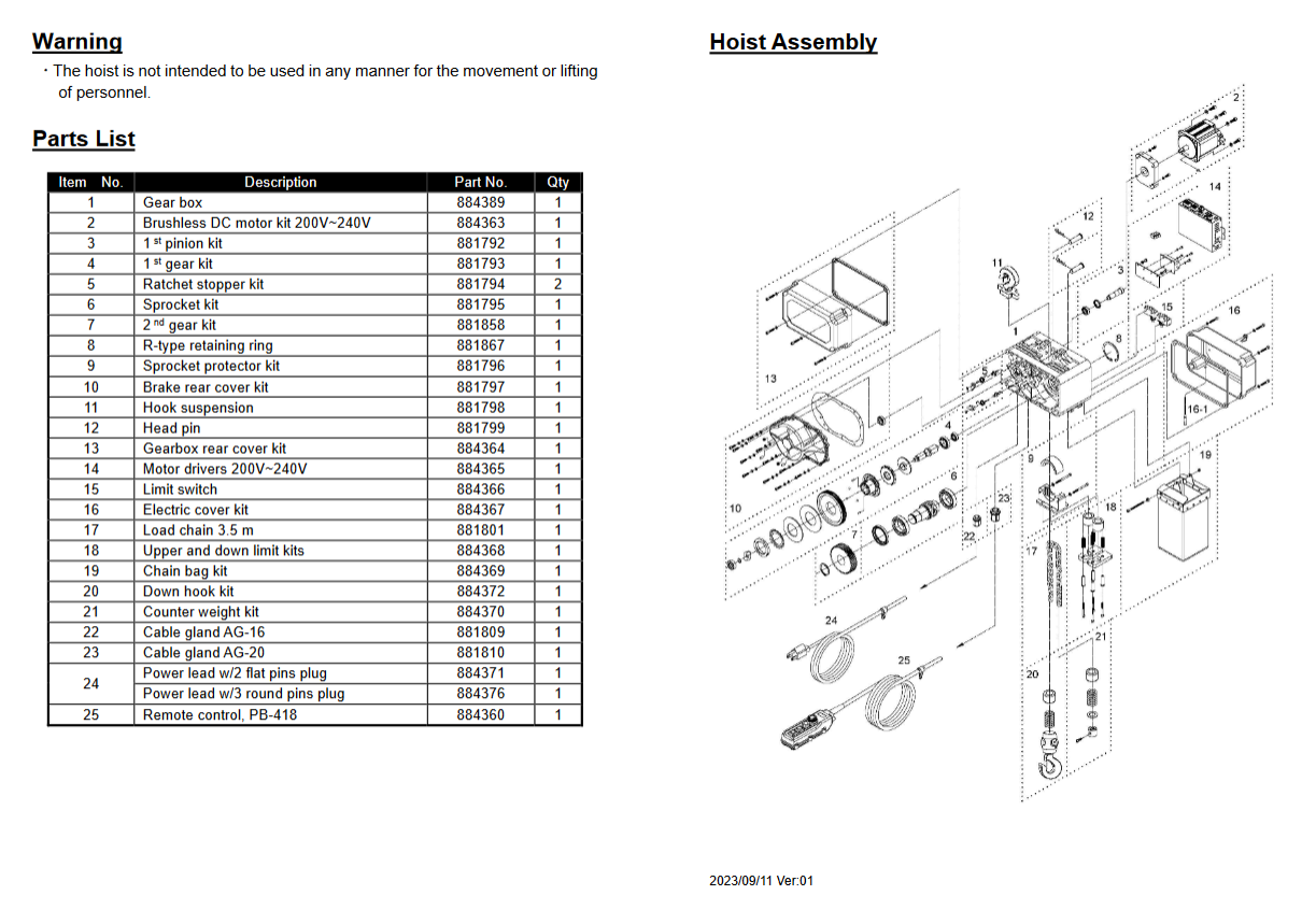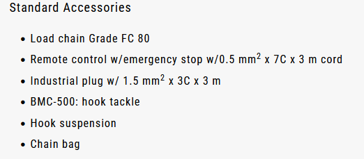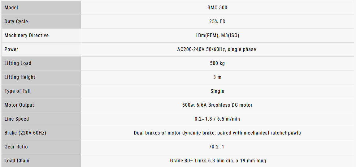 BMC-1000 Βαρούλκο αλυσίδας ,κινητήρα συνεχούς ρεύματος χωρίς ψήκτρες - φορτίο ανύψωσης 1.000 kg