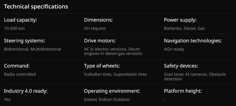 - ITALCARRELLI ΑΥΤΟΚΙΝΟΥΜΕΝΟΙ ΜΕΤΑΦΟΡΕΙΣ ΠΟΛΛΑΠΛΩΝ ΚΑΤΕΥΘΥΝΣΕΩΝ ITALCARRELLI P700E ΜΕ ΧΩΡΙΤΙΚΟΤΗΤΑ ΦΟΡΤΙΟΥ ΑΠΟ 10 ΕΩΣ 50 ΤΟΝΟΥΣ ΚΑΙ ΑΝΩ