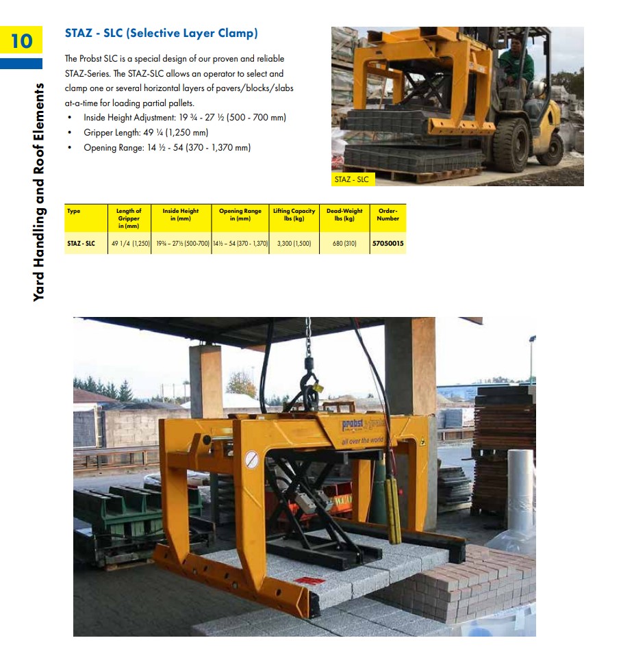PROBST STAZ-SLC | Ανυψωτική αρπάγη ενός ή περισσότερων στρωμάτων πλακών ειδικά σχεδιασμένη για χρήση με περονοφόρα με ανυψωτική ικανότητα εώς 1500 kg