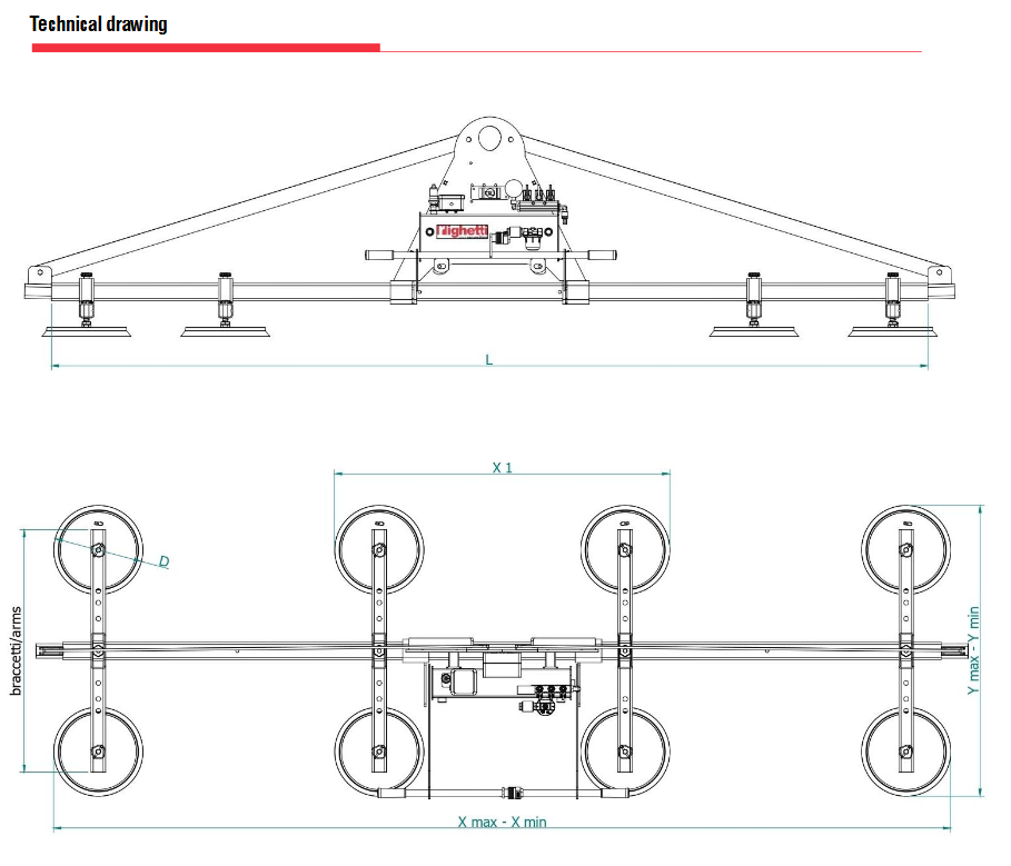 Το ανυψωτικό μπορεί να κατασκευαστεί με διαφορετικά μήκη εγκάρσιας δοκού, από L 2000 mm έως L 4000 mm (διαφορετικά μήκη κατόπιν παραγγελίας).