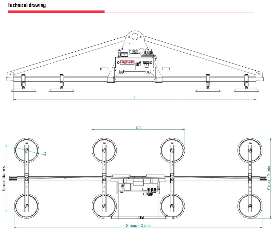 Το ανυψωτικό μπορεί να κατασκευαστεί με διαφορετικά μήκη εγκάρσιας δοκού, από L 2000 mm έως L 4000 mm (διαφορετικά μήκη κατόπιν παραγγελίας).