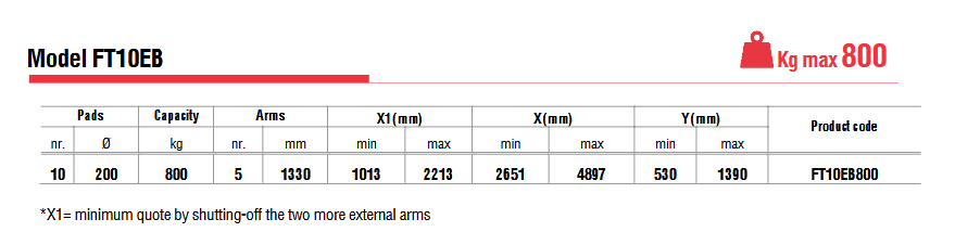 FT10EB800 is a sheet metal vacuum lifter with telescopic frame.