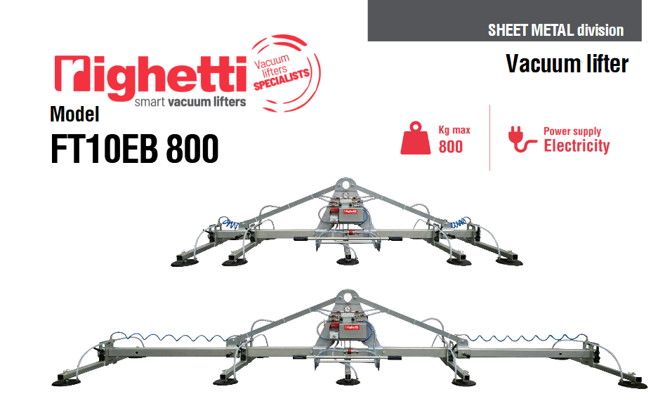 - ELECTRIC VACUUM LIFTER for metal sheets RIGHETTI FT10EB 800KG 220V OR 380V