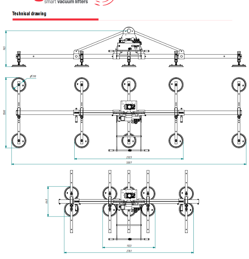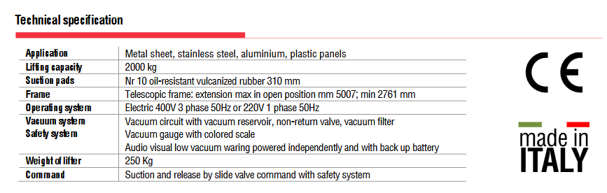 Όντας το μήκος του ρυθμιζόμενο από 2761 mm έως 5007 mm είναι ο τέλειος ανυψωτήρας κενού για το χειρισμό λαμαρίνας μεταβλητών διαστάσεων όπως 6000x2000mm, 4000x2000mm και 3000x1500mm.